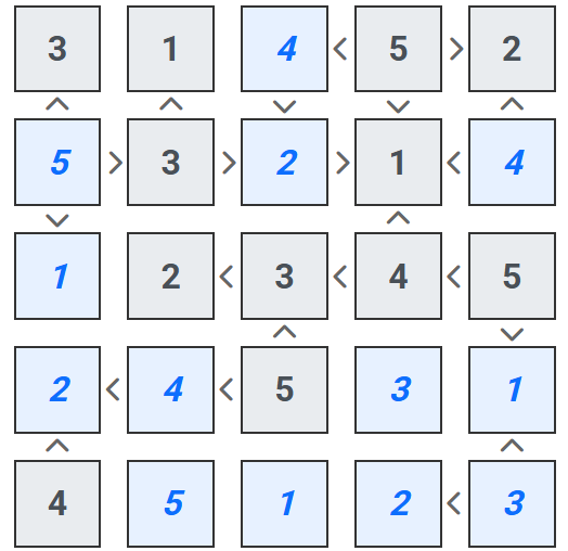 Oyun tahtası, eşit sayıda satır ve sütundan oluşan bir karedir. Hücreler boş olarak başlar. Bazı hücreler arasında, yatay veya dikey olarak yerleştirilmiş "<" veya ">" işaretleri bulunur. Örneğin, iki yatay komşu hücre arasında "A > B" yazıyorsa, A hücresine yazılacak sayı, B hücresine yazılacak sayıdan kesinlikle büyük olmalıdır. Bu ilişkiler, bulmacayı çözerken kullanacağınız en güçlü kısıtlamalardır.